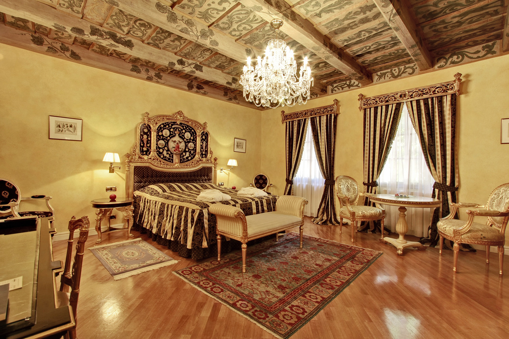 Всех 27 номеров и 19 апартаментов имеет совершенно индивидуальный характер и пространственную планировку: номера Deluxe, Junior Suite, Family Suite, Полулюксы с террасой, Королевский Люкс, Tower Suite, Alchymist Suite, Imperial Suite.