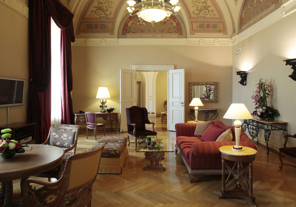Пятизвездочная гостиница Boscolo Carlo IV Luxury является уникальным в своем роде благодаря драгоценной атмосфере, утонченному комфорту, которое очаровывает гостей от номеров до ресторана, от Бизнес Центра до Сигарного Бара у роскошного бассейна с мозаичным дном. Запах старинного дерева, очарование мрамора, классические тимпаны, отделка, лепка: всё говорит об уникальном приёме.