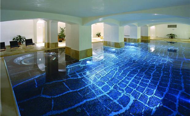 Обворожительный закрытый бассейн встретит гостей в голубизне своего мозаичного дна, где Вы сможете понежить тело и мысленно расслабиться: просторная и комфортная обстановка позволит сделать прыжок и расслабляющий массаж, окунуться в пар, пузырьки гидромассажа или предаться наслаждению в центра хорошего самочувствия для того, чтобы восстановить физическое и душевное состояние.