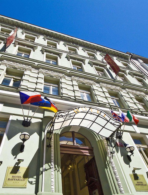 Отель Raffaello размещен в историческом здании 19 века и выполнен в соответствующем стиле. Внутри он весь украшен хрустальными люстрами, мраморными полами и мягкими диванами.
