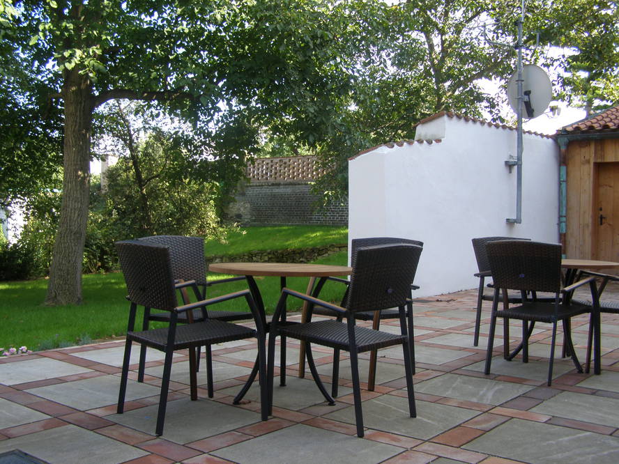 А на самой територии находится уютный сад и терраса, где можно расслабится и провести время в спокойной обстановке с освежающими напитками, после долих прогулок по людным улочкам центра Праги.
