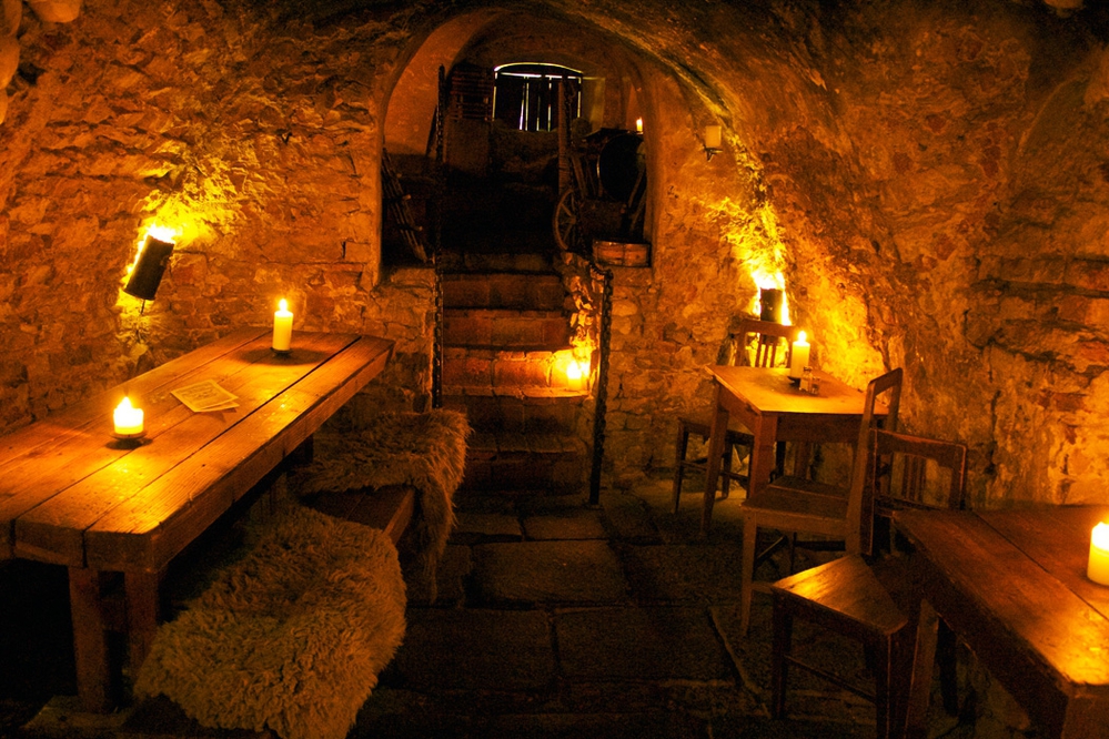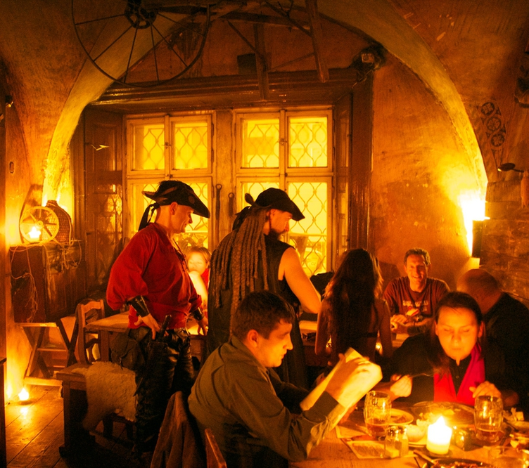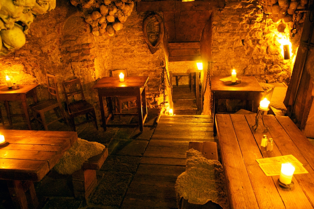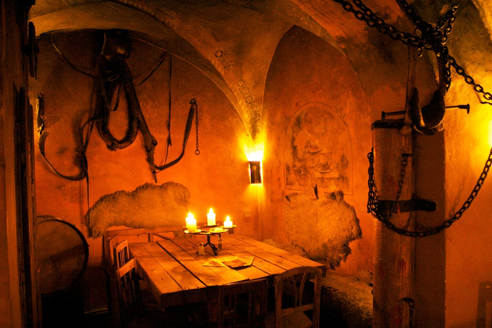 В пивной «У короля Брабантского» постарались как можно лучше воссоздать атмосферу средневековой корчмы. Всё как положено: темно, холодно, грязно и пахнет горелым маслом. На стенах много черепов и орудий для пыток. Электрического освещения нет — только свечи. Местами из темноты «вылезают» пугающие фигуры в рясах. В меню широкий выбор блюд именно на компанию (подают на больших подносах). Вилки и ножи, соответственно эпохе, не выдают (но если захватить их с собой, никто вас за это в камеру к ведьмам не подсадит).